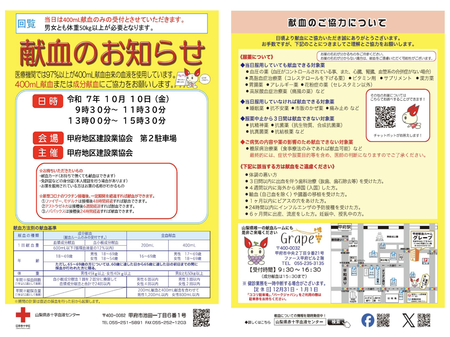 工事期間:10月中旬まで。 8月より、甲府地区建設業協会は工事のため、駐… 続きを読む